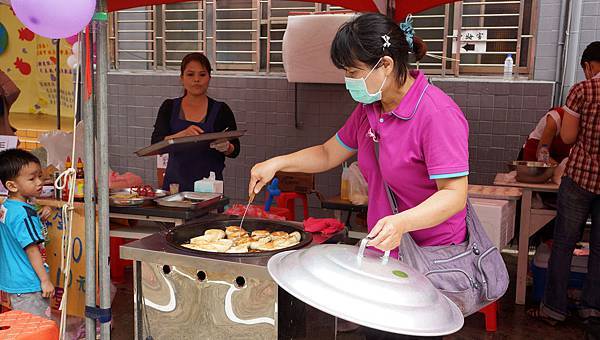 (善牧新移民姊妹自行成立的南洋MAMA魔法廚房首次將美食製作實況帶到市集現場,美味飄香引來許多民眾爭相搶食。)